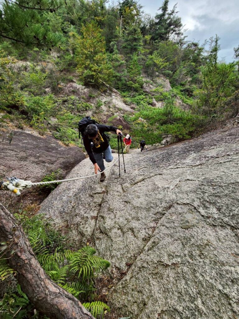 紅葉というよりジェラシックパークのような登山道と岩のアスレチックの連続でしたが、全員無事に登頂出来ました。